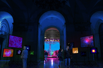 L'atrium abrite plus d'une quinzaine d'écrans, évoquant l'?uvre ? Zapping zone ? de Chris Marker. Chaque vidéo illustre ce que représente la lumière pour des scientifiques de l'Institut lumière matière (CNRS/Université Claude Bernard Lyon 1) et du Centre de recherche astrophysique de Lyon (CNRS/Université Claude Bernard Lyon 1/ENS de Lyon). Cet ensemble esthétique et hypnotique est une plongée vertigineuse dans l'infiniment petit et l'infiniment grand. Le second espace (cour principale de l'H?tel de ville) s'ouvre sur un puits de lumière monumental de six mètres de haut, plongeant dans le sol de ce lieu magnifique. Cette hyper-structure est un montage inédit de fines bandes de tissus lumineux, réalisées par Brochier Technologies et actuellement étudiées comme outil possible de dépollution de l'air et de l'eau par l'Institut de recherches sur la catalyse et l'environnement de Lyon (CNRS/Université Claude Bernard Lyon 1).