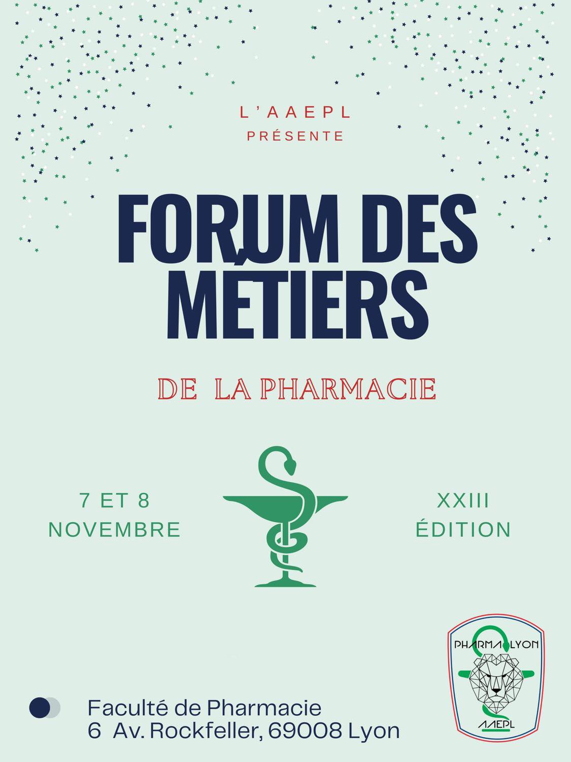 - 23ème Forum des Métiers de la Pharmacie le 7 et 8 novembre à la faculté de Pharmacie