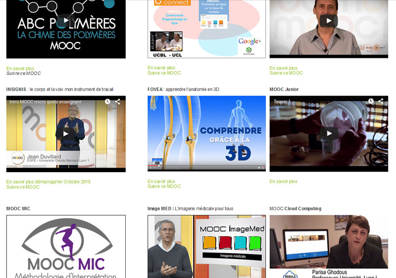 L'université Lyon 1 enrichit son offre de formation en proposant à un large public des formations en ligne : MOOCs (Massive Open Online Courses). Ouverts à tous, ils mêlent apprentissages individuels et collectifs, tout en favorisant les échanges entre apprenants. Chacun peut étudier de chez soi, à son rythme et utiliser rapidement les connaissances nouvellement acquises.